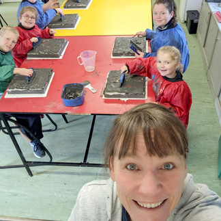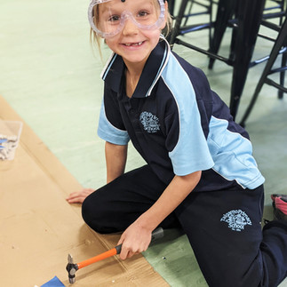 I began engaging with students to determine the concepts, creative pursuits and passions they wished to explore. The idea of a “cabinet of curiosity” type display, taking up the end wall of the library, was determined to be a possible space to display the many artworks and 3D pieces that would be created during the residency. Lunch time and recess saw the library transformed into a creative hub with over 30 students working on both individual and collaborative pieces. I was technical back up and sourced the materials students needed to realise their chosen pieces. From painting and drawing, to sculpture, mosaic and textile based practices, it became such a diverse offering. The end wall was painted and transformed into a giant display with shelves and hanging space for a collection of artworks. A space that will have the ability to be changed and updated over time.